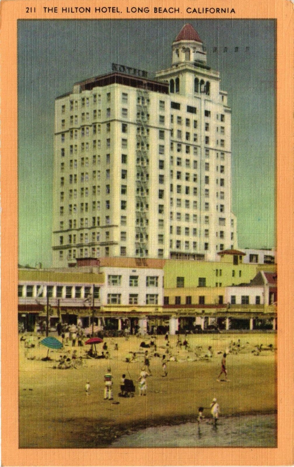 Title (ebay affiliate link): DR JIM STAMPS US THE HILTON HOTEL LONG BEACH CALIFORNIA LINEN POSTCARD 1957