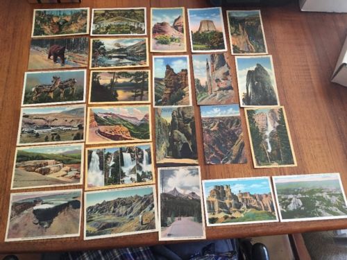 Title (ebay affiliate link): 24 Yellowstone, Glacier, Zion, Yosemite Bad Lands National Park Linen Postcards