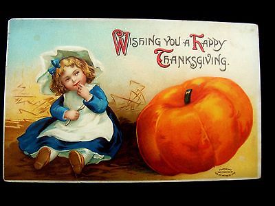 Clapsaddle Girl w Apron Spoon Eyes Pumpkin w Vision of Pie Thanksgiving Postcard