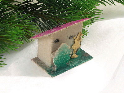Title (ebay affiliate link): Antique Cardboard Christmas Ornament, House, sprinkled with glass beads