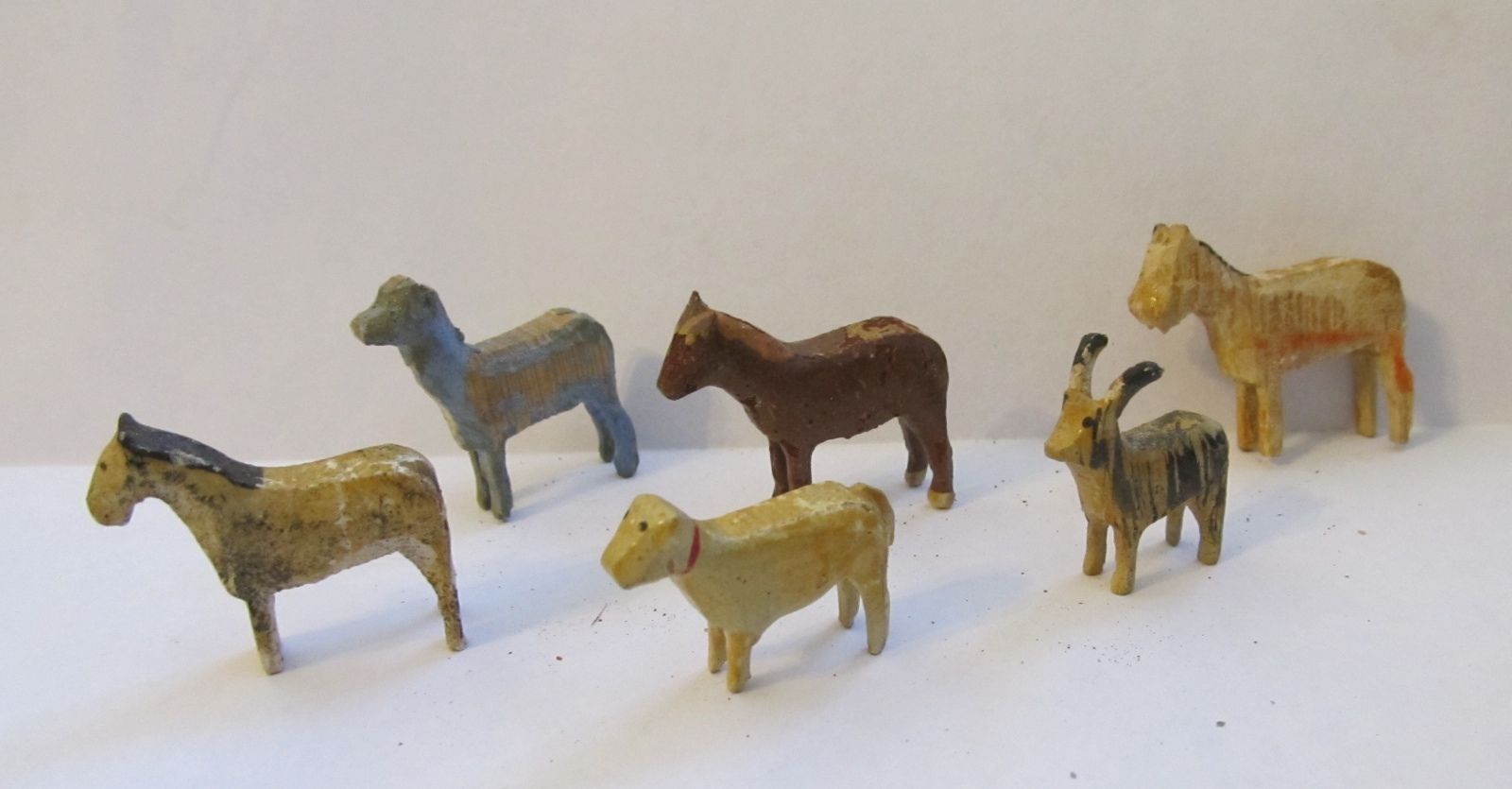 Title (ebay affiliate link): VINTAGE GERMAN CARVED WOODEN MINIATURE FARM ANIMALS PUTZ village LOT OF 5