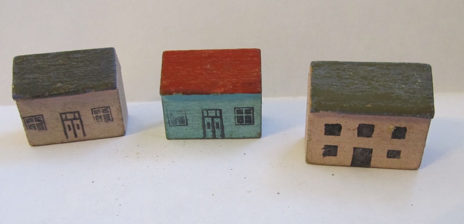 VINTAGE GERMAN CARVED WOODEN MINIATURE HOUSES PUTZ village LOT OF 3
