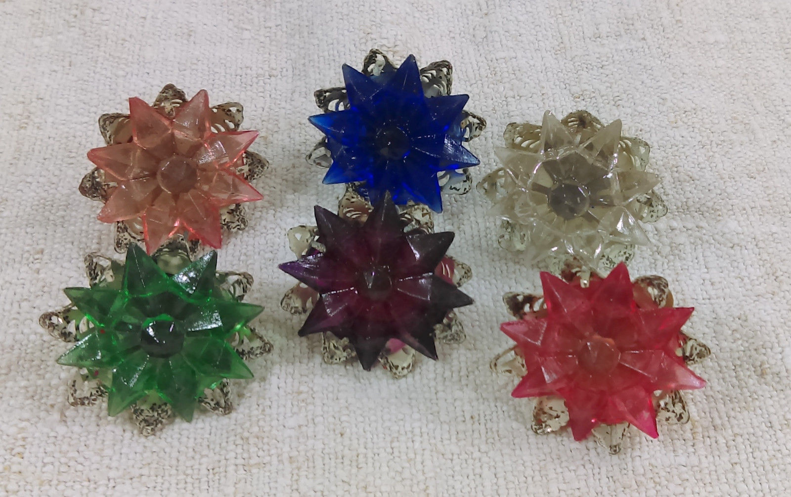 Vintage Lot/6 Patent 1936 Christmas Light Bulbs Metal Leaf Base Plastic Star C6