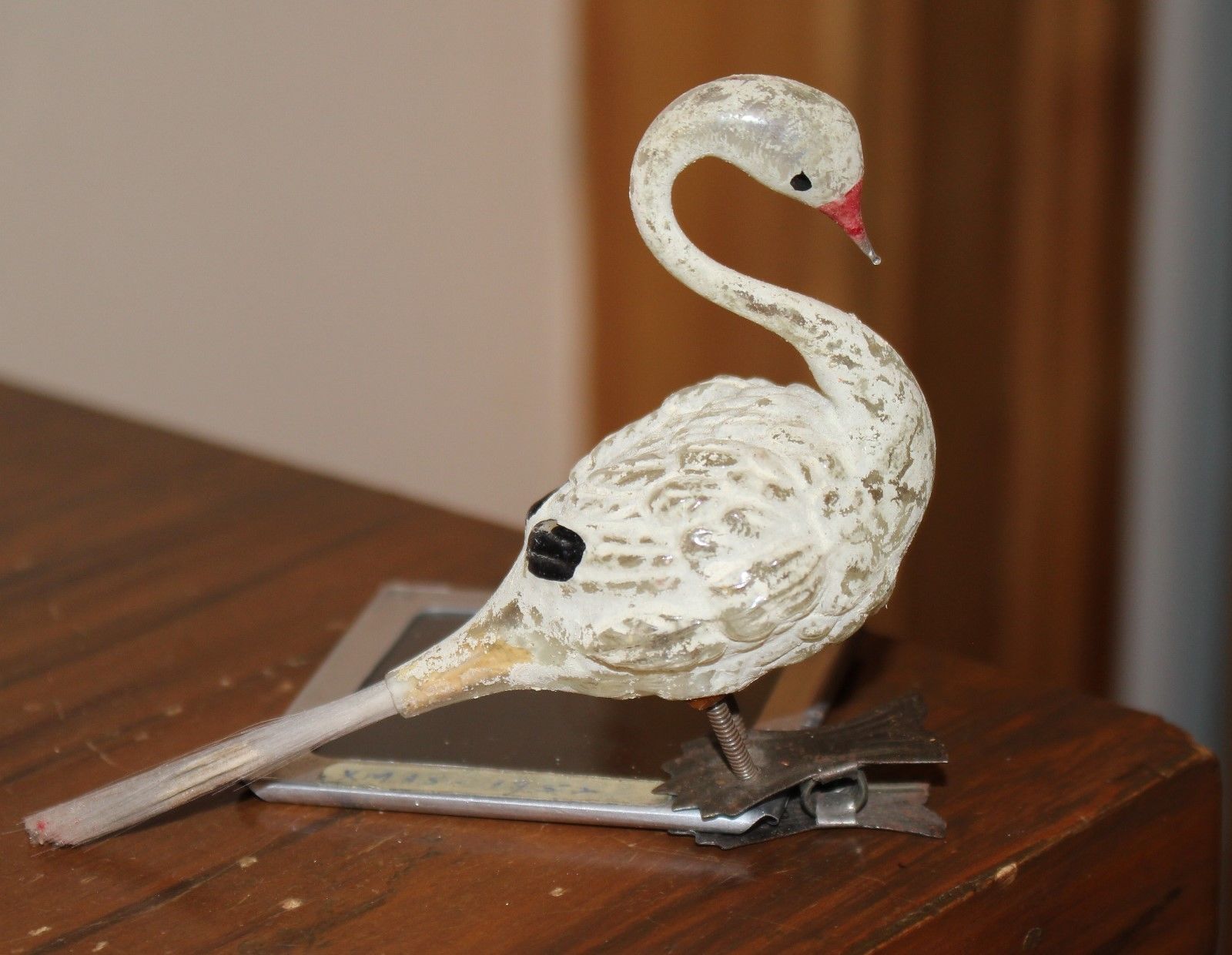 Early 1890s White Swan on Clip. Spun Glass Tail. German. Poor Paint, but Nice!