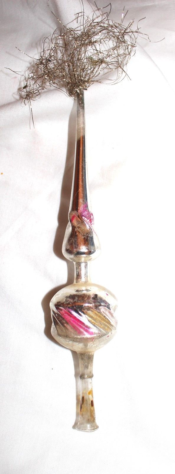 Early 1900s Tinsel Topped, Glass Tree Topper. Germany. Worn, but elegant!