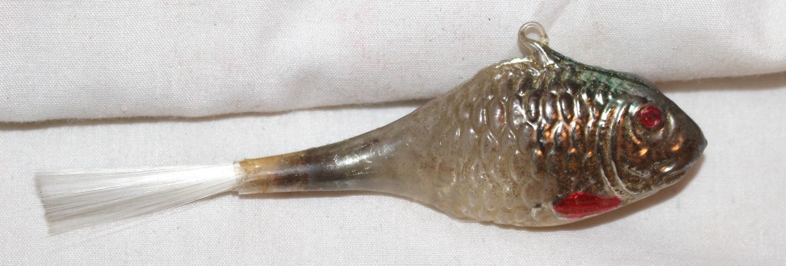 Early 1900s Fish with Spun Glass Tail. Glass Annealed Hook. Germany, but worn.