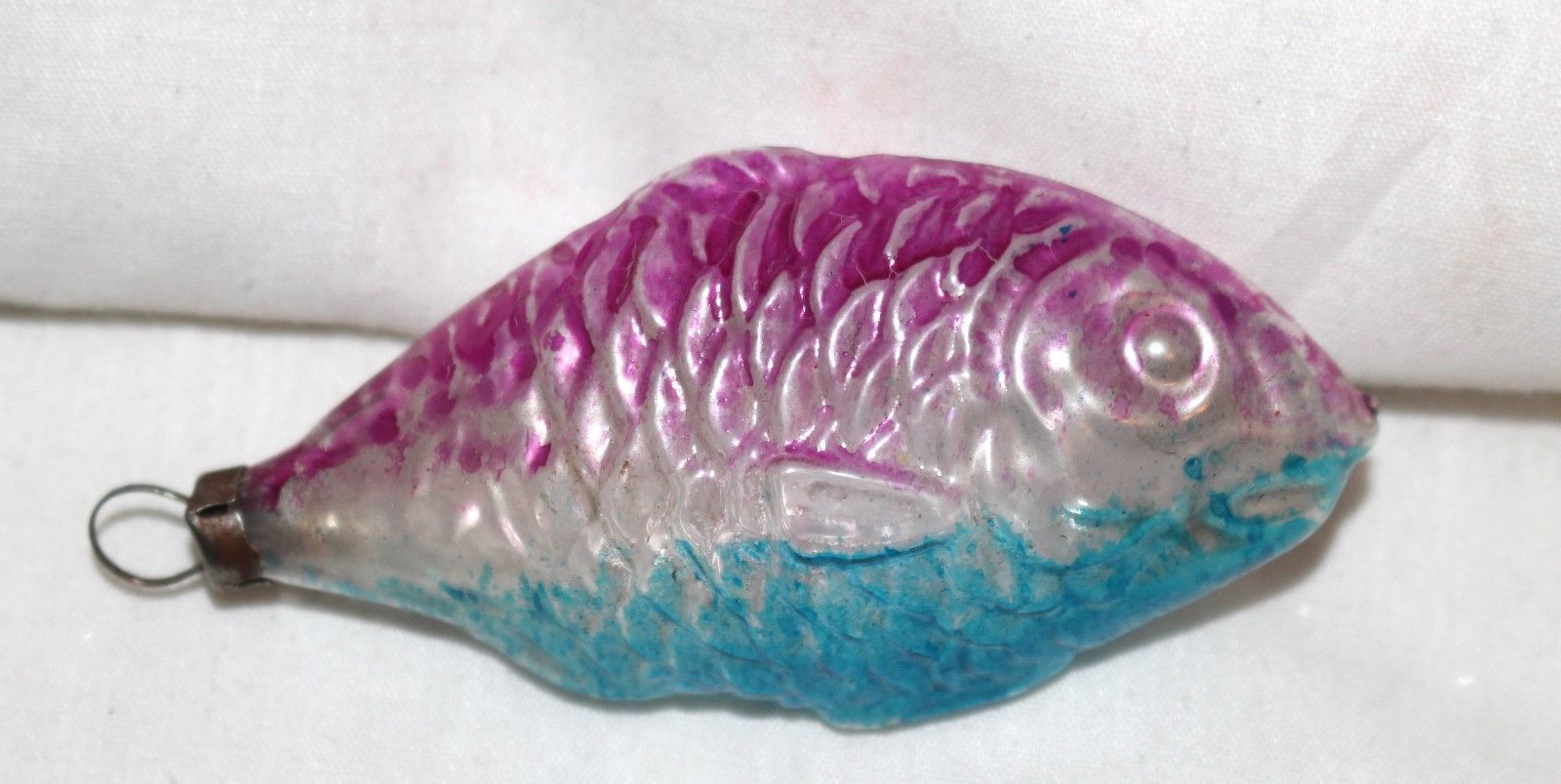 Title (ebay affiliate link): Blue and Pink Fish. Glass Ornamernt. 1920s. Germany, but worn from swimming.
