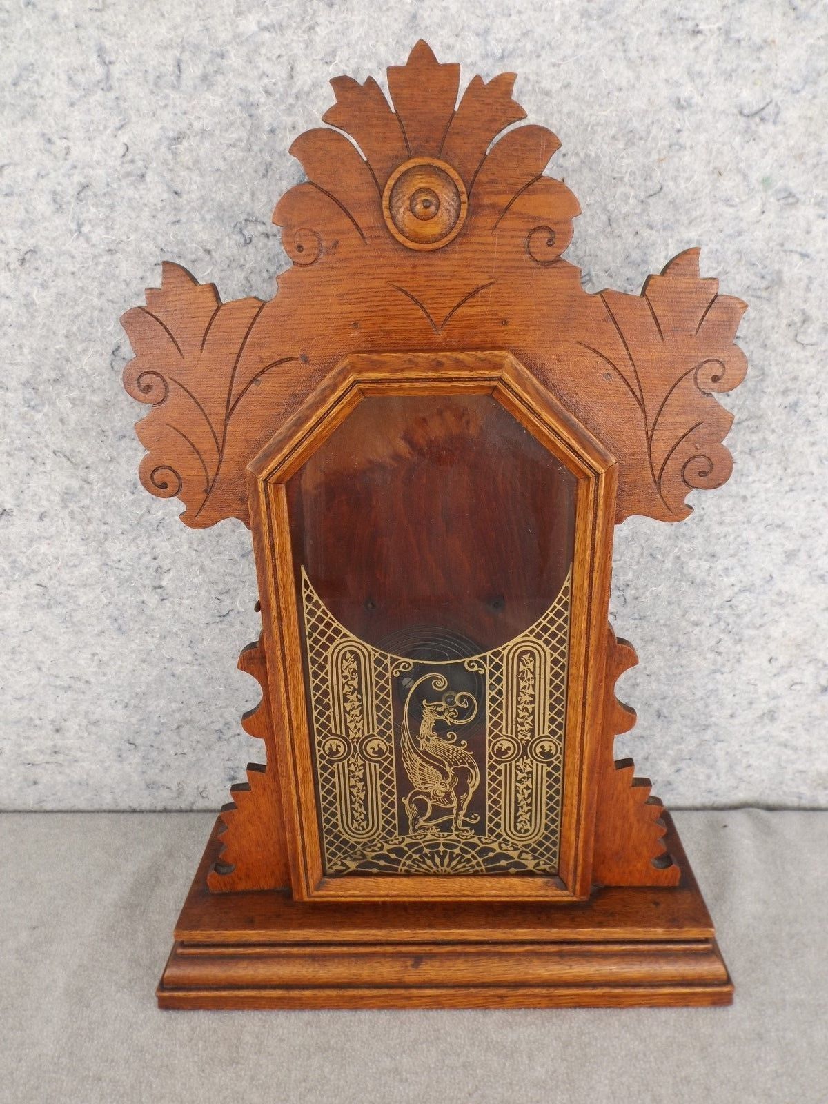 Title (ebay affiliate link): OLD ANTIQUE INGRAHAM GINGERBREAD PARLOR LG SHELF MANTLE CLOCK CASE & GONG PARTS