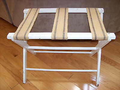 Title (ebay affiliate link): Luggage Rack Retro Folding Wooden Vintage Antique Suitcase Stand White