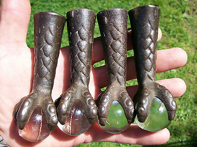 4 Cast Iron Glass Ball and Talon Claw Feet Furniture Stool Table Leg Antique