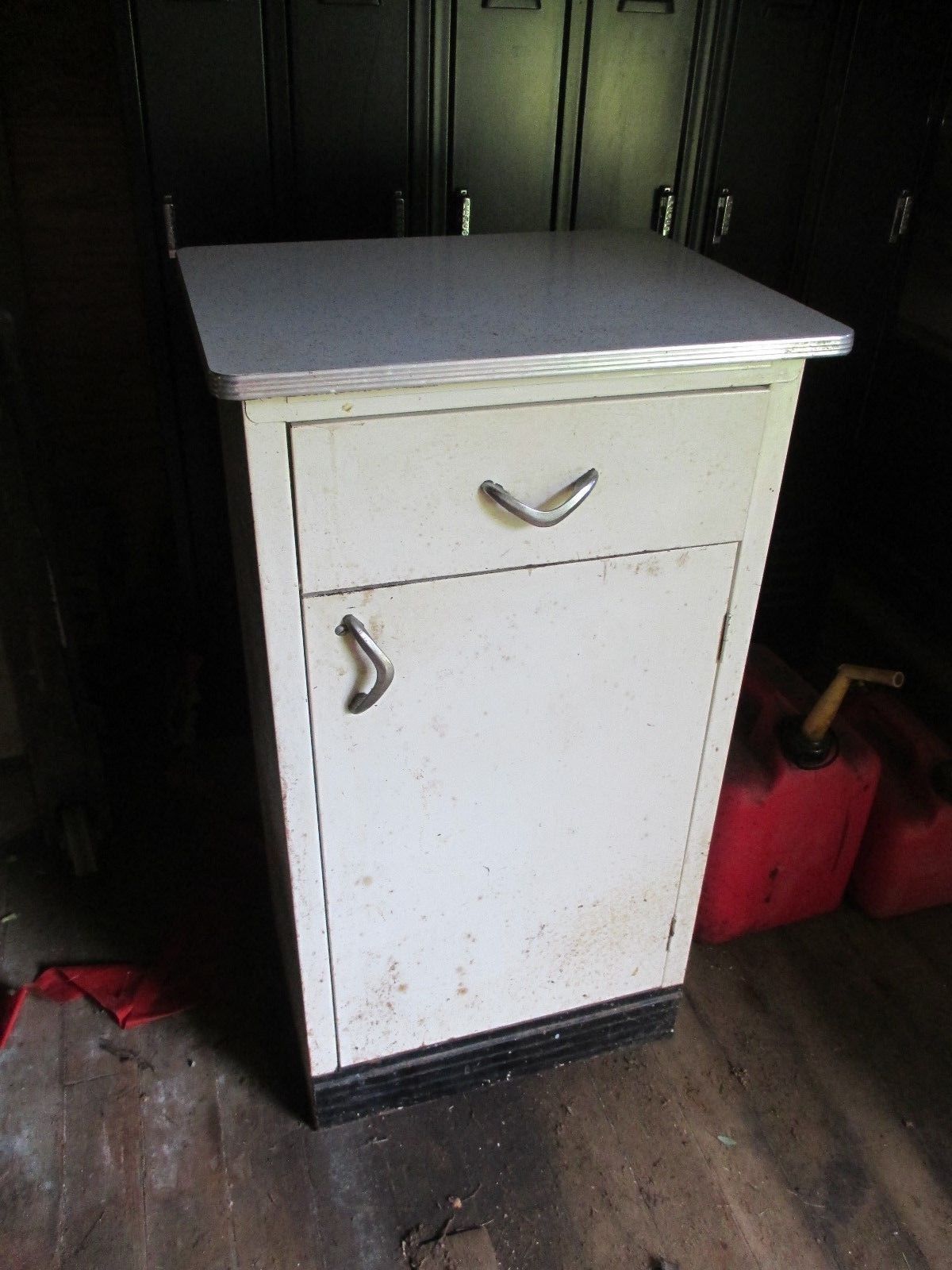 Title (ebay affiliate link): VINTAGE MID CENTURY WHITE METAL FORMICA TOP KITCHEN LAUNDRY ROOM UTILITY CABINET