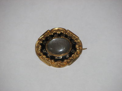 ANTIQUE GOLD & ENAMEL IN MEMORY OF MOURNING BROOCH