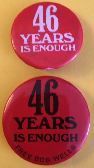 Title (ebay affiliate link): 46 Years Is Enough - Free Bob Wells "The First Black Panther" Cause Pin Buttons