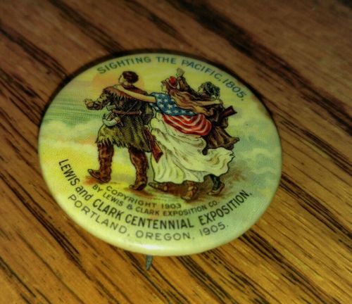 Title (ebay affiliate link): Vintage PINBACK LEWIS AND CLARK EXPOSITION CENTENNIAL PACIFIC 1805 1905 SIGHTING