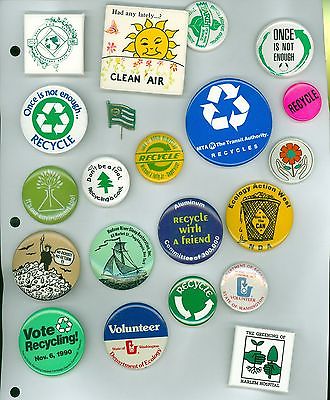 Title (ebay affiliate link): 21 Vintage 1970-90's Earth Day Cause Pinback Buttons: Once Is Not Enough Recycle