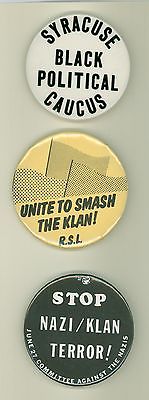 Title (ebay affiliate link): 3 Vintage 1970-80's Black Social Justice Pinback Buttons - Syracuse Causus