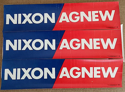 Title (ebay affiliate link): Three 3 Vintage 1972 GOP Republican NIXON AGNEW Campaign Bumper Stickers ok!