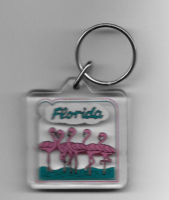 Title (ebay affiliate link): VINTAGE KEYCHAIN SOUVENIR FLORIDA PINK FLAMINGOS ACRYLIC 1 1/2"