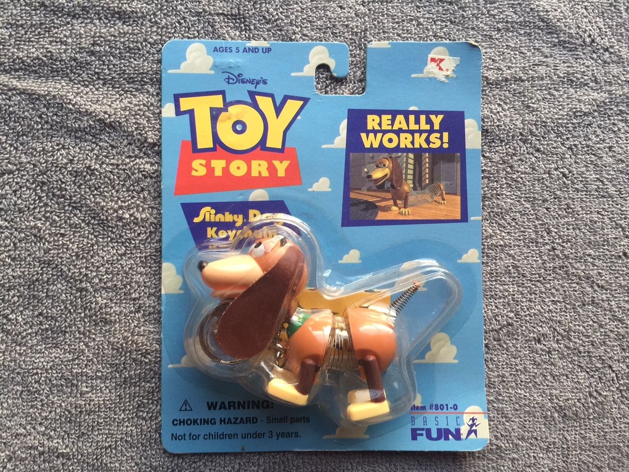 Title (ebay affiliate link): Disney Toy Story SLINKY DOG Keychain 1996 Works Pull Toy Vintage Puppy Pixar