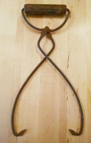Antique Vintage Metal Ice Block Tongs With Wood Handle Jackson Ice Co.