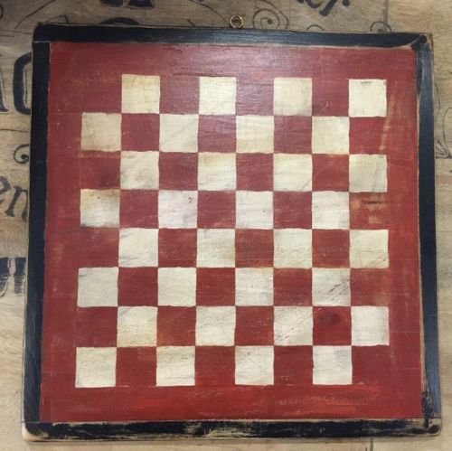 Title (ebay affiliate link): AMAZING Handmade Painted Folk Art Wooden Checker Board - Patina/Painted 16x16