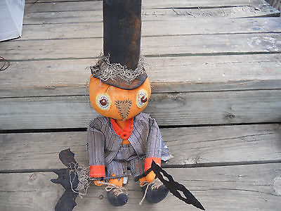 Primitive Folk Art Halloween Big Head Jack O Lantern Grungy Doll 26 Inches