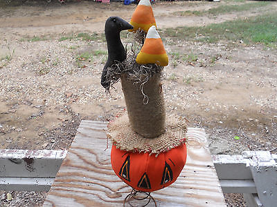 Primitive Fall Halloween Jack O Lantern Rusty Spring Nodder Ornie Shelf Sitter
