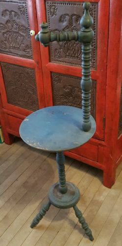 Title (ebay affiliate link): Antique turned wood table lamp wonderful old blue paint.