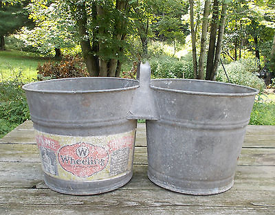 Primitive Old Farm House Barn Double Galvanized Buckets or Pails Original Label