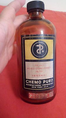 Rare bottle of cyanide / acid poison - Manufacturing New York / USA