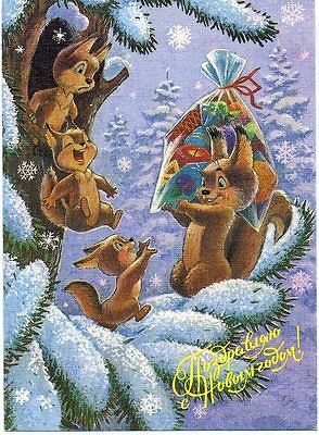 Title (ebay affiliate link): 1992 ZARUBIN Squirrel Christmas Gift Happy New Year Russian postcard