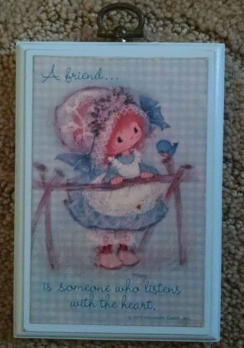 Title (ebay affiliate link): 1972 Vintage Hallmark plaque, A Friend... 3.5 x 4.5 little girl with blue bird