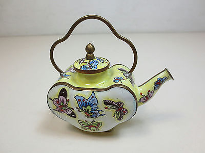 Kelvin Chen Miniature Painted Enamel Copper Teapot Butterfly Design.