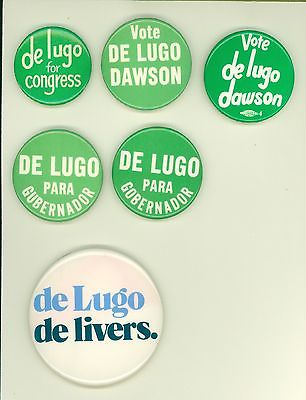 6 Vintage 1970's U.S. Congressman Ron de Lugo Political Virgin I Pinback Buttons