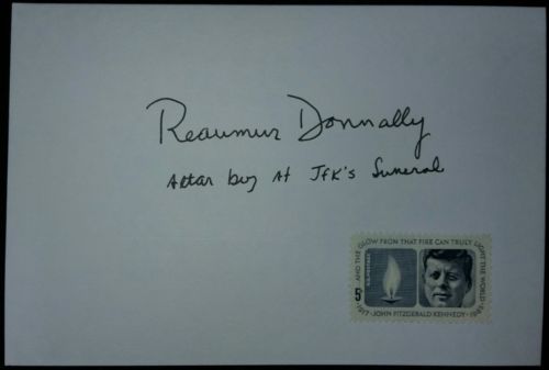 Title (ebay affiliate link): RARE REAUMUR DONNALLY SIGNED CARD JFK FUNERAL ALTAR BOY KENNEDY ASSASSINATION