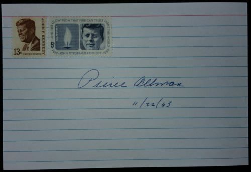 RARE PIERCE ALLMAN SIGNED CARD KENNEDY ASSASSINATION EYEWITNESS JFK RAN INTO LHO