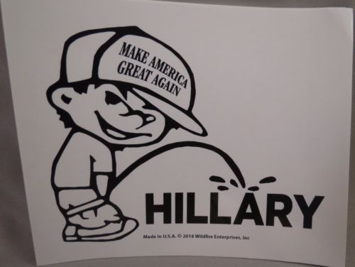 Title (ebay affiliate link): LOT OF 20 TRUMP PISS ON ANTI HILLARY BUMPER STICKER MAKE AMERICA GREAT AGAIN HAT