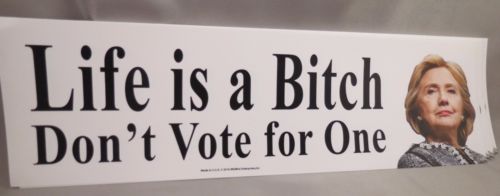 Title (ebay affiliate link): WHOLESALE LOT OF 20 ANTI HILLARY LIFE IS A BITCH DONT VOTE FOR ONE STICKER TRUMP