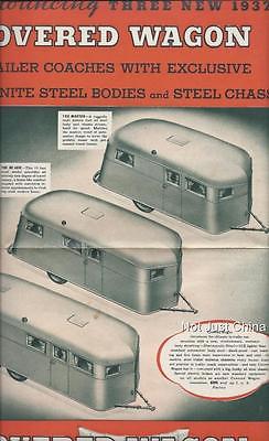 Covered Wagon 1937 Trailer, Coaches, Camper, 4 Page Colored Brochure or Pamphlet