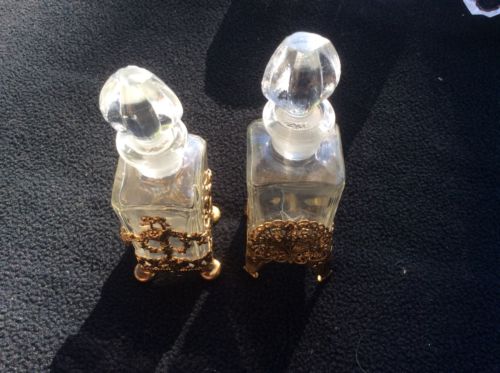 Title (ebay affiliate link): Pair Gold Fillagree Perfume Bottles W/Stoppers Beautiful Older Bottles !!!