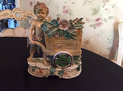 Victorian Era Cherub Angel Ceramic Hand Painted Vase Gabriel?