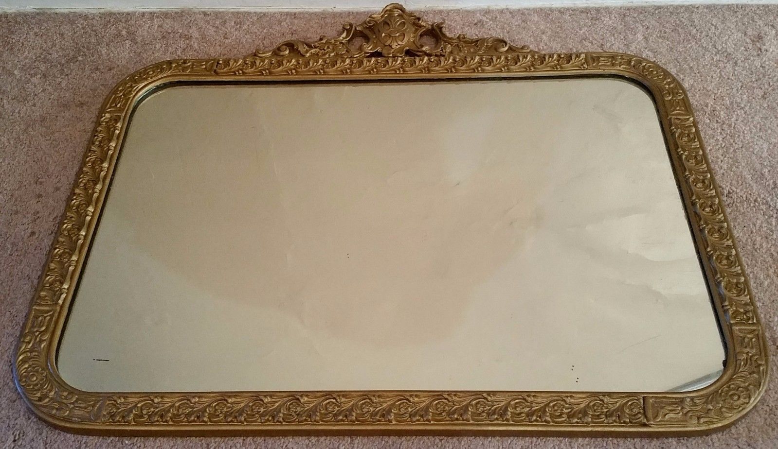 | Large Vintage Gesso Over Wood Gold Guilt Ornate Wall Mirror |