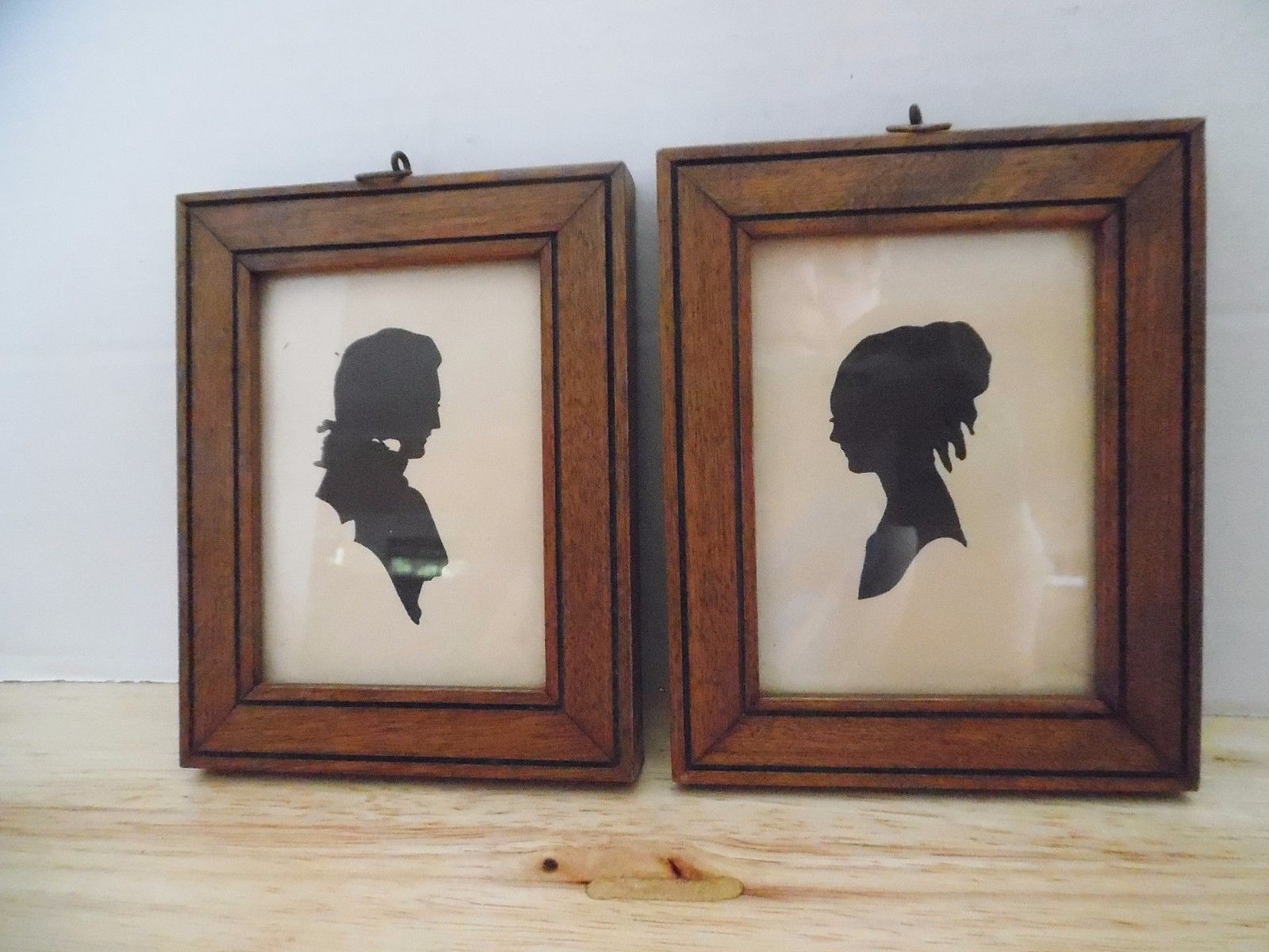 Title (ebay affiliate link): Vintage Pair Hand Cut Victorian Young Couple Silhouettes Wood Frames/Hangers VGC