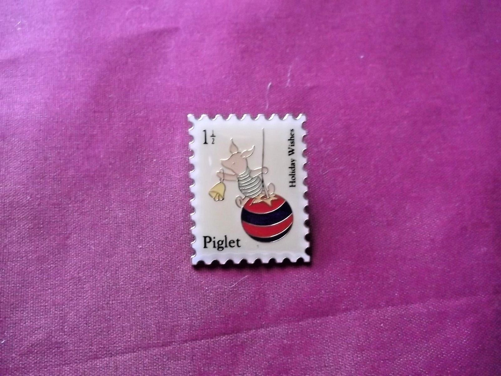 Title (ebay affiliate link): Disney Piglet Holiday Wishes Stamp Lapel Pin In Goldtone & Enamel