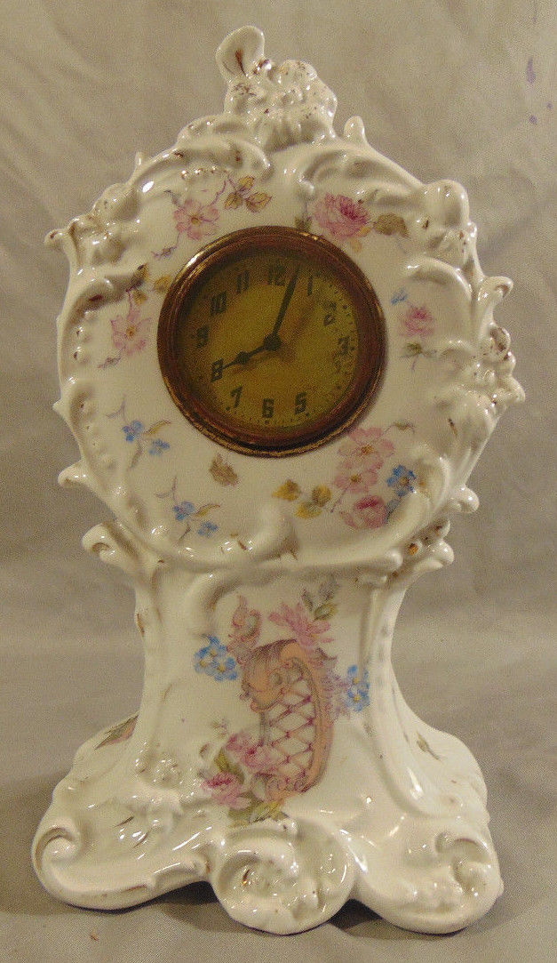 Title (ebay affiliate link): Antique Painted Porcelain Mantel Clock Unknown Maker Estate Fresh