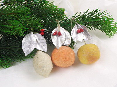 Title (ebay affiliate link): 3 x Vintage Spun Cotton, Christmas Decorations,Apple,Lemon,Orange