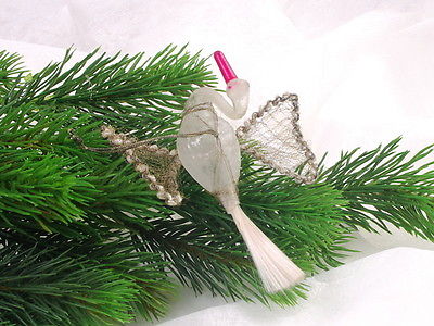 Antique Glass Christmas Ornaments Swan,decorated with braid threads,Germany