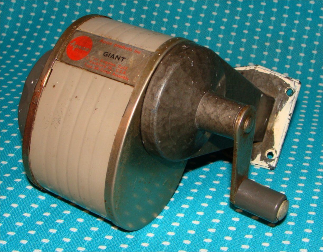 Title (ebay affiliate link): Vtg Apsco Giant 6 Hole Pencil Sharpener Wall/Desk Mount Hand Crank Model 3A