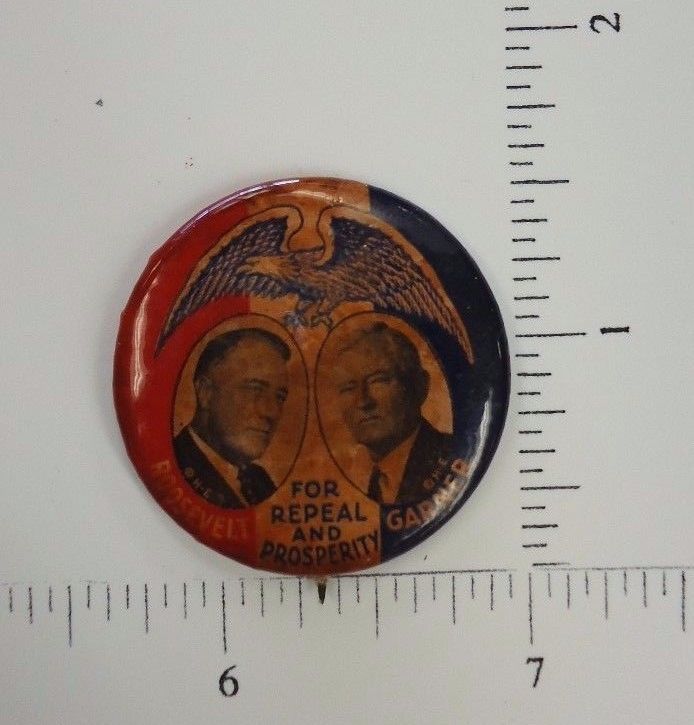 Title (ebay affiliate link): 1932 PRESIDENTIAL PIN ELECTION FRANKLIN ROOSEVELT & JOHN GARNER FOR REPEAL