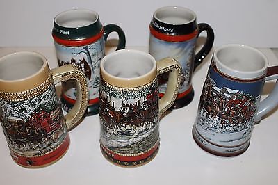BUDWEISER CHRISTMAS HOLIDAY BEER STEIN MUG LOT 1987, 1988, 1989, 1991, 1992
